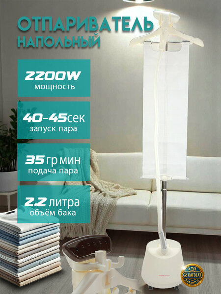 Паровая станция EGS562 – забота о ваших вещах за считанные секунды! Ищете надежный способ быстрой глажки и качественной дезинфекции тканей? Вертикальный отпариватель для одежды EGS562 идеально подойдет семьям с детьми, занятым профессионалам и всем, кто ценит свое время. Паровая станция мощностью 2000 Вт легко справляется и с мятыми вещами, и с тяжелыми шторами, уничтожая при этом 99,9% бактерий. Забота о тканях и экономия времени: преимущества модели EGS562 - ✅ Многофункциональность: настройка доски под углами 0°, 45° и 90°, для вертикального и горизонтального отпаривания одежды. - Быстрый и мощный пар: скорость подачи 35 г/мин обеспечивает до 60 минут беспрерывной работы для эффективного ухода за множеством вещей за один раз. - ️ Универсальность: три режима для различных материалов – хлопок, лён, шерсть и деликатные ткани (шёлк, синтетика). - ️ Безопасность прежде всего: механизмы автоматического отключения при отсутствии воды и простое на 30 минут; теплоизоляция корпуса предотвращает ожоги, а изолированный кабель обеспечивает защиту от замыкания. - ✨ Высококачественные материалы: облегченный алюминиевый утюжок с керамической глазурью равномерно распределяет тепло и бережно разглаживает ткани без повреждений.