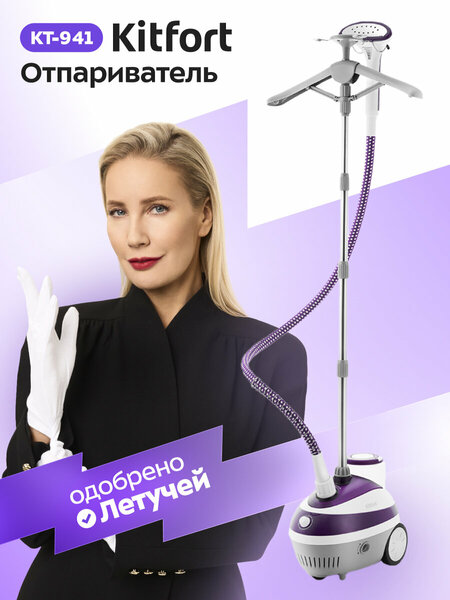 Вертикальный отпариватель Kitfort КТ-941 — серьезный конкурент паровых утюгов: он позволяет чрезвычайно быстро прогладить любые вещи и изделия из текстиля. Это тщательный уход за вещами, не отнимающий много времени. Отпариватель Kitfort КТ-941 оснащен складной вешалкой для одежды. Она облегчает и ускоряет процесс глажки. На держателе для утюжка расположены петли для того, чтобы можно было повесить одежду на вешалке для быстрой чистки. Съемный резервуар для воды позволяет легко залить воду. Имеется держатель утюжка и складная вешалка. В комплекте идут защитная варежка и ворсовая щетка. Корпус отпаривателя имеет напольное исполнение и оснащен колесиками для удобного перемещения. Регулятор подачи пара находится на корпусе прибора. Отпариватель имеет 4 уровня подачи пара. Рядом с регулятором расположен индикатор работы. Принцип работы отпаривателя прост. Вода из резервуара под действием силы тяжести поступает в бойлер, где нагревается и испаряется. Пар проходит по паровому шлангу и выходит из паровых сопел на рабочей поверхности парового утюжка. Возможности и функции: - складная вешалка - 4 уровня подачи пара - съемный резервуар для воды - паровой шланг не нагревается во время работы