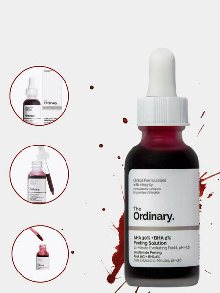 The Ordinary AHA 30% + BHA 2% Peeling Solution — интенсивный кислотный пилинг для глубокого очищения и обновления кожи. AHA 30% удаляет ороговевшие клетки кожи, выравнивает тон и текстуру. BHA 2% проникает в поры, снижает количество чёрных точек и воспалений. ✨ Кожа становится более гладкой, чистой и сияющей. Преимущества: Борется с чёрными точками и расширенными порами Выравнивает тон кожи Помогает при акне и постакне Профессиональный уровень эксфолиации Vegan, без спирта Способ применения: Нанесите тонкий слой на чистую сухую кожу. ⏱ Оставьте не более 10 минут, затем смойте. Использовать 1–2 раза в неделю. Важно: Не подходит для чувствительной кожи. Днём обязательно использовать SPF. Объём: 30 мл