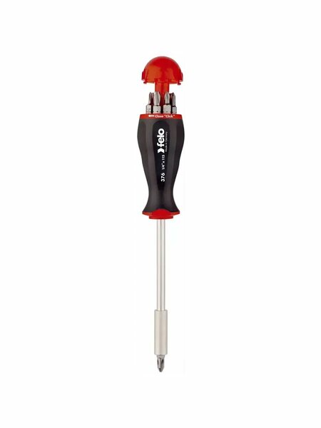 Отвертка бит Felo предназначена для монтажа и демонтажа резьбовых соединений с усилием, которого не достичь при помощи стандартных отверток. Вспомогательный силовой инструмент оснащен прорезиненной рукояткой, удобной для хвата и длительной работы, и шестигранным патроном. Комплектные сменные биты позволяют работать со шляпками разных форм. Переключатель реверса обеспечивает смену направления вращения. Металлический затыльник выдерживает удары молотком Особенности: прочный металлический корпус; вывинчивание перетянутого и заржавевшего крепежа осуществляется с помощью двойного воздействия (прямого по оси и поворотного в сторону) при совершении ударов; магнитный наконечник; модель — 37604105; комплектация — отвертка, набор односторонних бит (SL4, SL5.5, SL6.5, PH0, PH1, PH2, PZ1, PZ2) из закаленной стали твердостью 45-52 HRC, пластиковый кейс, инструкция.