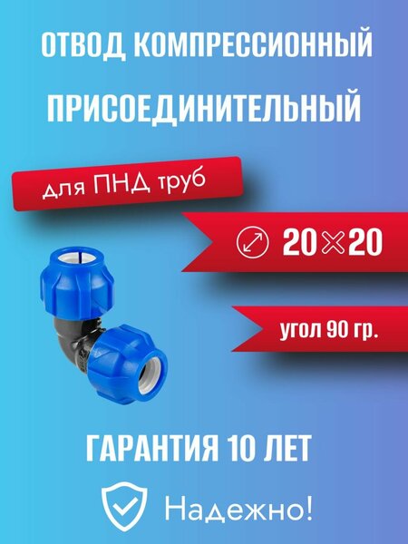 Простой монтаж: Компрессионное соединение позволяет быстро соединить трубы диаметром 20 мм без специальных инструментов, обеспечивая герметичность благодаря уплотнительным кольцам.