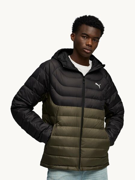 Представляем стильную и инновационную куртку от Puma, идеальную для тех, кто ценит комфорт и модный дизайн. Куртка выполнена в современном двухцветном сочетании черного и оливкового, что добавляет изысканности и универсальности вашему образу.