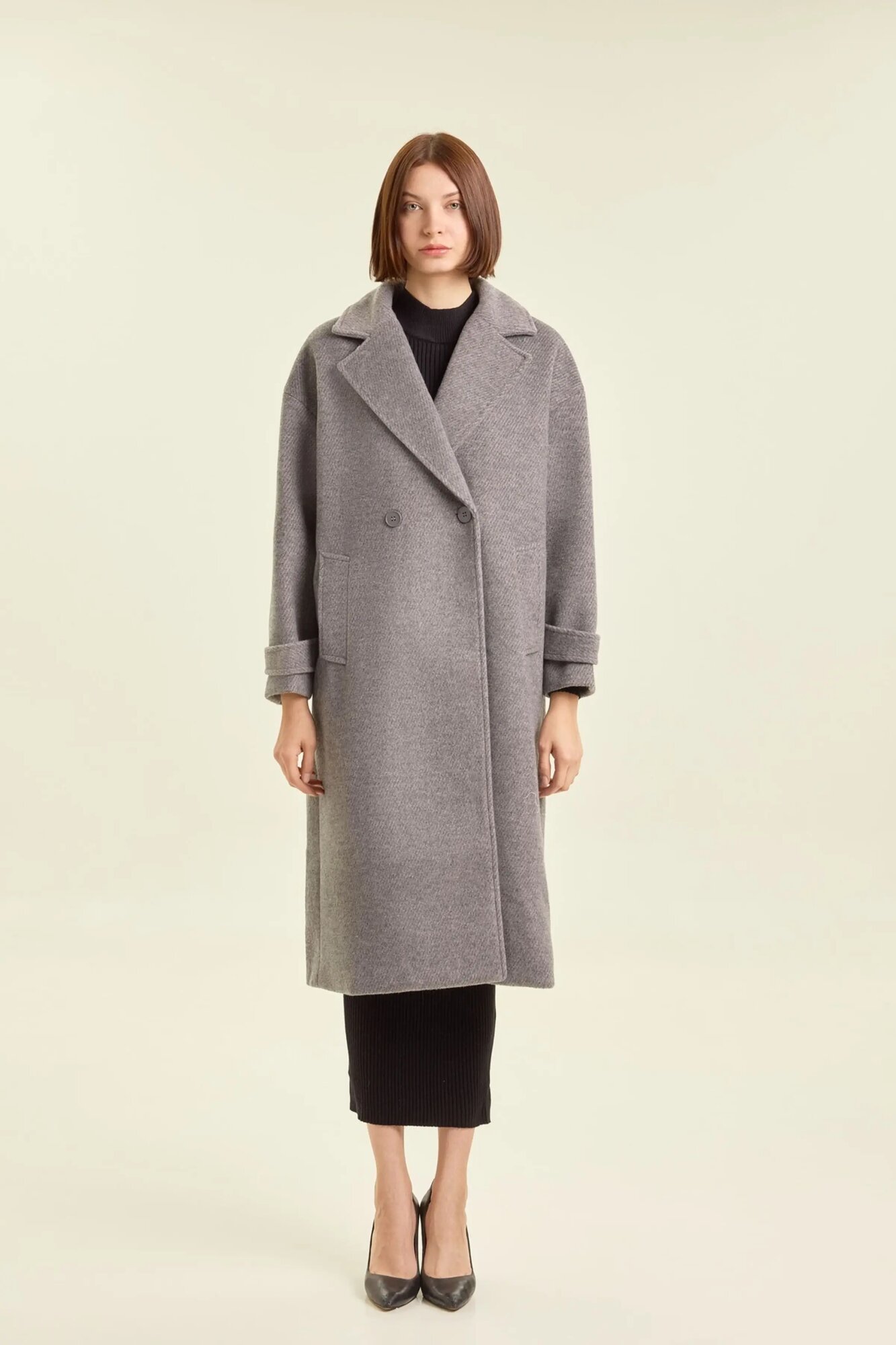 Элегантное пальто прямого силуэта создаёт аккуратный и благородный образ, подчеркивая линию плеч и добавляя образу выразительной мягкости. Модель выполнена в удлинённом варианте, что визуально вытягивает фигуру и делает комплект более собранным. Свободная посадка обеспечивает комфорт и позволяет легко комбинировать пальто с объемными свитерами или строгими платьями. Аккуратный воротник, лаконичная двубортная застёжка и продуманные пропорции делают вещь универсальной для повседневных и деловых аутфитов. Такая модель легко вписывается в базовый гардероб и подчёркивает чувство стиля без лишних деталей.
