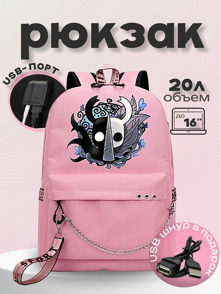 рюкзак рыцарь из игры hollow knight розовый с цепью №1