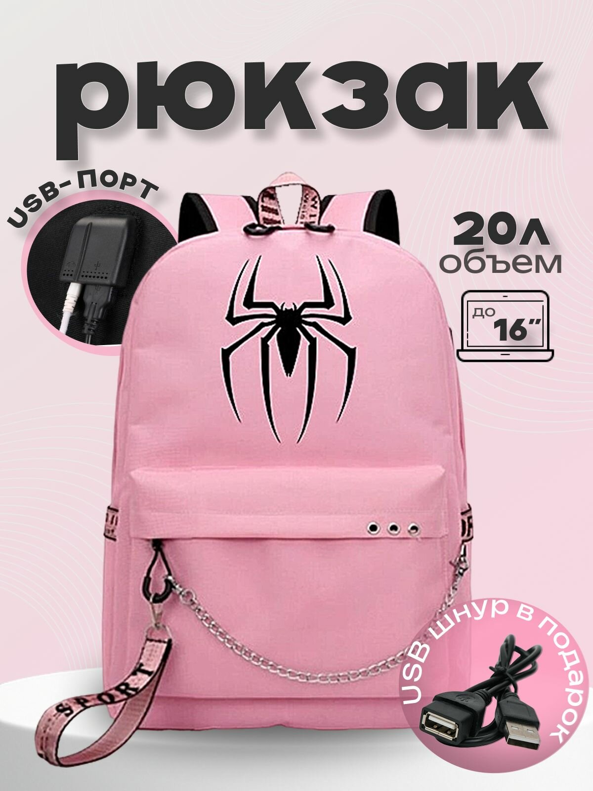 USB-выход, вентилируемые лямки, вентиляция спины, отверстие для наушников, мягкие лямки
