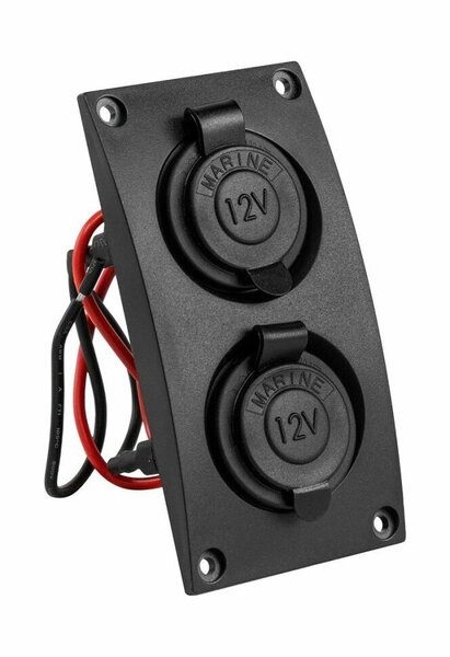 Панель с двумя разъемами прикуривателя, используется для питания и зарядки электронных гаджетов. Врезается в приборную панель. Для защиты контактов предусмотрены герметичные резиновые крышки.