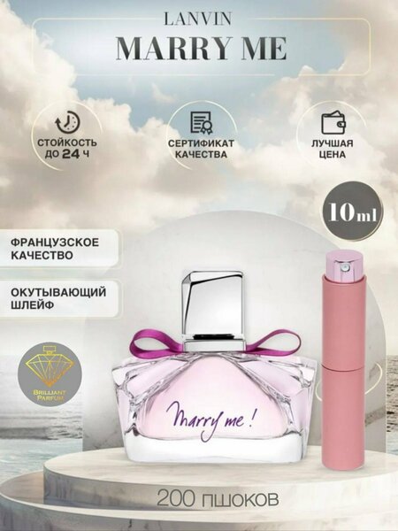 {"widgets":{"@light/ProductM2bEdoOnlyBadge":{"/content/page/fancyPage/defaultPage/m2bEdoOnlyBadge":{"wrapperProps":{"margins":{"top":"2"}},"isM2bEdoOnlyEnable":false}}},"meta":{"/content/page/fancyPage/defaultPage/m2bEdoOnlyBadge":{"name":"@light/ProductM2bEdoOnlyBadge"}},"collections":{"views":{"defaultOffer":"vi_7236740666794658073_bi_12036634722487002102"},"viewItem":{"vi_7236740666794658073_bi_12036634722487002102":{"id":"vi_7236740666794658073_bi_12036634722487002102","composeId":"7236740666794658073","buyOptionId":"bi_12036634722487002102"}},"buyOption":{"bi_12036634722487002102":{"id":"bi_12036634722487002102","title":"Marry Me, 5 мл, Франция. Парфюмерная вода для женщин.","offerId":"Zhb2gaVLne0Q-g2sZKyhTg","slug":"parfyumirovannaya-voda-lanvin-marry-me-5-ml-frantsiya","trackingLinks":{"cpa":"/-lkZZJtFzvpOZSb467p-BDITZOXK","promotionUrl":"/VjOL1D_fTx1KufqzV64IYLogq2JJ"},"skuId":"4331764012","productId":"1111519904","categoryId":"15927546","navnodeId":"16677491","departmentId":"54438","showUid":"17716967614375385299906001","counterStep":1,"minimum":1,"maximum":3,"price":{"value":98000,"currency":"UZS"},"vendorId":"15728405","feeShow":"OTNDnItfwRMlLJby2gHopZ4ipgWviMc7NQCJlGLxLwfcS6F3HYGCVQGZeqn8g_9u0gbtM-BQx_wzKdup4JbHt2Anil03OypW5DiNuYoL07vevml4WHbIc5JpVMuZeX-MPGQXXgM37IcwfvwVyYoGAf4jbb536VWctYHmkhXCjBCRfJ_CnIi2teCEZJi3xiLPXDyrVqtXUhItr-_a4y8cBKJbfrxxAkg5dtEyk2pj5B1vxE5nFNy4xUGdX2sQPpypm850Alwp1RaRTifs0mz_37GKoQbwO9ymrBAlvSgDKhr50dO1KTKAhrpW3COCv96B","feedId":"52812670","feedOfferId":"52812670.1742049344-6131","shopId":"431782","supplierId":"203451052","businessId":"196488097","supplierName":"Parfum Brilliant","businessName":"Parfum Brilliant","hasAnySize":false,"hasAnyDelivery":true,"benefitTypeCode":"waremd5","basePrice":{"value":199000,"currency":"UZS"},"promos":[{"key":"xD1-78LDt8ve5lk-5jj0FQ","type":"empty-promo","shopPromoId":"cf_135726","anaplanId":"cf_135726","landingUrl":"https://market.yandex.ru/special/empty-promo-landing?shopPromoId=cf_135726"}],"flags":["isVisual","isFbs","isPartialCheckoutAvailable"],"analytics":{"warehouseId":"1769934","paymentType":"ANY","atSupplierWarehouse":true,"paymentMethodTypes":["BY_CARD_ONLINE","BY_CARD_TO_COURIER","IN_CASH"],"deliveryOptions":[{"deliveryType":"delivery","fromDate":1774461561,"toDate":1774461561,"priceInfo":{"value":0,"currency":"UZS"}},{"deliveryType":"pickup","fromDate":1774461561,"toDate":1774461561,"priceInfo":{"value":0,"currency":"UZS"}},{"deliveryType":"pickup","fromDate":1774461561,"toDate":1774461561,"priceInfo":{"value":0,"currency":"UZS"}}],"shopSku":"1742049344-6131","placementType":"3P","ownMarketPlace":true,"shopSlug":"yandex-market","yandexBnplInfo":{"enabled":true},"promos":[{"key":"xD1-78LDt8ve5lk-5jj0FQ","type":"empty-promo","shopPromoId":"cf_135726","landingUrl":"https://market.yandex.ru/special/empty-promo-landing?shopPromoId=cf_135726","isPersonal":false,"description":"Новые_акции_для_лендингов_полок_УЗБ_Beauty_1201"}],"hypeBadge":{"hasBadgeRare":false}},"deliveryType":"DELIVERY","imageMeta":{"namespace":"mpic","groupId":14098623,"key":"2a00000195a2ebed180c46ca522a9fe27e21"}}},"market2Business":{"current":{"id":"current","isM2b":false}}}}