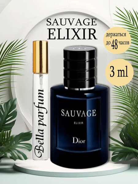 {"widgets":{"@card/UniversalPromoBadge":{"/content/page/fancyPage/defaultPage/universalPromoBadge":{"wrapperProps":{"margins":{"bottom":"3"}},"initialTime":1771833285279,"offerComposeId":"6812917979942406012"}}},"meta":{"/content/page/fancyPage/defaultPage/universalPromoBadge":{"name":"@card/UniversalPromoBadge"}},"collections":{"productServiceSnippets":{"6812917979942406012":{"productSnippet":{"snippetId":"document_id","type":"MODEL_CARD_LAYOUT","productPayload":{"snippetStyle":"NORMAL","title":{"value":"Парфюмированная вода Sauvage Elixir Dior, это аромат для мужчин, 3 мл"},"badges":{},"price":{"actualPrice":{"amount":{"intPart":15000,"currency":"UZS"},"style":"RED","type":"OTHER_DISCOUNT"},"oldPrice":{"amount":{"intPart":60000,"currency":"UZS"},"style":"STRIKETHROWED"}},"gallery":{"mediaItems":[{"picture":{"baseUrl":"https://avatars.mds.yandex.net/get-mpic/13919929/2a000001967c8bba5bf9ea6f4d43d3b01f3e/","width":1080,"height":1440,"title":"Парфюмированная вода Sauvage Elixir Dior, это аромат для мужчин, 3 мл"},"type":"IMAGE"},{"picture":{"baseUrl":"https://avatars.mds.yandex.net/get-mpic/15100610/2a000001967c8bba5aa4a531e919348de1b0/","width":600,"height":600,"title":"Парфюмированная вода Sauvage Elixir Dior, это аромат для мужчин, 3 мл"},"type":"IMAGE"},{"picture":{"baseUrl":"https://avatars.mds.yandex.net/get-mpic/11620615/2a00000195eb75f5be0722f43f3c50d4b303/","width":405,"height":540,"title":"Парфюмированная вода Sauvage Elixir Dior, это аромат для мужчин, 3 мл"},"type":"IMAGE"},{"picture":{"baseUrl":"https://avatars.mds.yandex.net/get-mpic/5236741/2a00000195efa2943a4272be4734211c90a3/","width":852,"height":649,"title":"Парфюмированная вода Sauvage Elixir Dior, это аромат для мужчин, 3 мл"},"type":"IMAGE"},{"picture":{"baseUrl":"https://avatars.mds.yandex.net/get-mpic/3732535/2a00000195e056a976367c7f12ea597fa11a/","width":1080,"height":1440,"title":"Парфюмированная вода Sauvage Elixir Dior, это аромат для мужчин, 3 мл"},"type":"IMAGE"}]},"rating":{"ratingValue":3.6,"ratingCount":42,"reviewsCount":9,"ratingCountStats":{"cnt1":11,"cnt2":3,"cnt3":1,"cnt4":2,"cnt5":25},"snippet":{"rating":"3.6","type":"product","description":"(42) · 141 купили","descriptionList":["(42)","141 купили"],"ratingStar":"3.5"}},"wishlistButton":{"businessId":194928754,"mskuId":4330054405,"modelId":1080534019,"oskuId":4330054405,"offerId":"w3ChwsfnD3zCn-fi3ZD8Sw"},"productRating":{"rating":"3.6","type":"product","description":"(42) · 141 купили","descriptionList":["(42)","141 купили"],"ratingStar":"3.5"}},"baobabPayload":{"type":"offer","wareId":"w3ChwsfnD3zCn-fi3ZD8Sw","modelId":1080534019,"marketSku":"4330054405","snippet_type":"product","isExpress":false,"price":60000,"additionalPrices":[{"priceType":"withDiscount","priceValue":15000},{"priceType":"unknown","priceValue":60000}],"hid":15927546,"shopId":431782,"shopSku":"MRKT-LYRWWLA1","supplierId":198199564,"supplierType":3,"isUltima":false,"oskuId":4330054405,"snippetTheme":"GRID_FULL","stockCount":20,"rating":{"rating":"3.6","purchaseCount":"141","gradesCount":"42","ratingType":"product"},"promoLogJoinId":"25a5315182c608607a70a8bde912c6b1/fd83e95468e76e59"},"themeType":"GRID_FULL"}}}}}