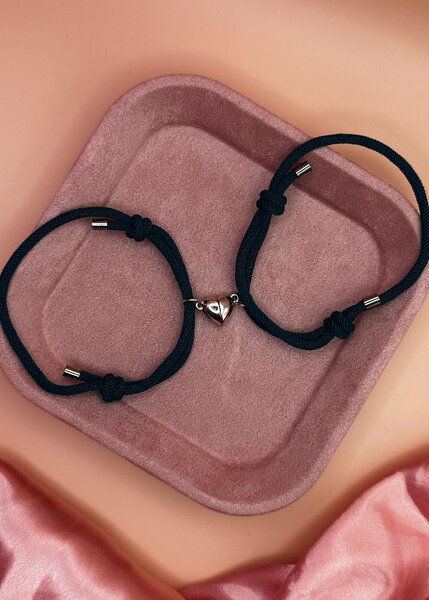 Парные браслеты «Сердечки» Минимализм с характером. Два браслета соединены металлическим замком в форме сердца. Символ простой и сильный: два человека, одна связь! Регулируемая плетёная нить удобно сидит на запястье, подходит на каждый день и не перетягивает внимание — но смысл считывается сразу. Идеально как: