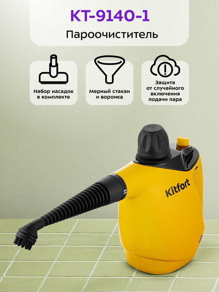 Пароочиститель Kitfort КТ-9140 способен заменить паровую швабру, дезинфектор, стеклоочиститель, отпариватель для тканей. Используя силу горячего пара, пароочиститель великолепно очищает поверхности и обеспечивает деликатную глажку вещей. Гибкий шланг поможет добраться до труднодоступных мест. Если установить насадку с резиновым скребком, то можно очистить любые гладкие поверхности вроде окон или зеркал. Надетая на насадку тряпка подойдёт для отпаривания ткани и обивки мягкой мебели. Когда бойлер нагрет - индикатор гаснет. При использовании пароочистителя индикатор будет периодически включаться и выключаться, показывая, что нагрев включается и выключается, поддерживая необходимую температуру в бойлере. Пароочиститель имеет бойлерный принцип работы. Специальная крышка на верхней части корпуса оснащена защитным механизмом. Для вашей безопасности крышка не открутится, пока температура и давление в бойлере не понизятся. В комплекте имеется струйная насадка, которая легко очистит плинтуса. Угловая насадка поможет удалить сложные загрязнения. Круглая нейлоновая щётка удалит стойкие загрязнения. А насадка для отпаривания хорошо подходит для очистки больших площадей.