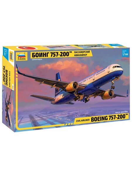 **Масштаб:** 1:144 **Количество деталей:** 120 **Размер модели, см:** 32,4 **Клей и краска в комплект модели не входят** Boeing 757-200 — это самый популярный вариант узкофюзеляжного лайнера Boeing 757, который выпускался с 1981 года. Этот среднемагистральный самолёт был разработан американской авиастроительной компанией «Boeing» как замена самолётам Boeing 727. При проектировании в конструкцию лайнера было заложено большое количество общих узлов и агрегатов с широкофюзеляжным дальнемагистральным Boeing 767. Это сделало самолёт одной из самых успешных пассажирских моделей американской компании «Boeing». Он до сих пор эксплуатируется авиапарками нескольких стран. За время производства было выпущено 1050 лайнеров Boeing 757-200, включая 80 самолётов грузовой версии 757-200PF.