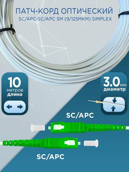 Патч-корд оптический SC/APC-SC/APC SM (9/125мкм) simplex (3.0мм) 10м