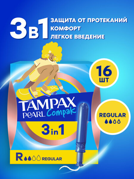 Тампоны TAMPAX из серии Pearl Compak в модели Regular Duo обеспечивают надежную защиту и комфорт. Они предназначены для использования при умеренных выделениях и обладают степенью впитываемости в 2 капли. В упаковке содержится 16 тампонов.