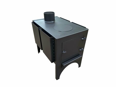 Эта печь изготовлена из прочной стали толщиной 1,5 миллиметра, что гарантирует долгий срок службы. Толстый колосник (3 миллиметра) обеспечивает равномерное сгорание топлива и увеличивает долговечность печи.Благодаря удобным кольцам для готовки на открытом огне, эта печь может использоваться для самых разных целей. Её компактные размеры (ШГВ: 35x52x50 см) позволяют легко разместить печь в любом месте.