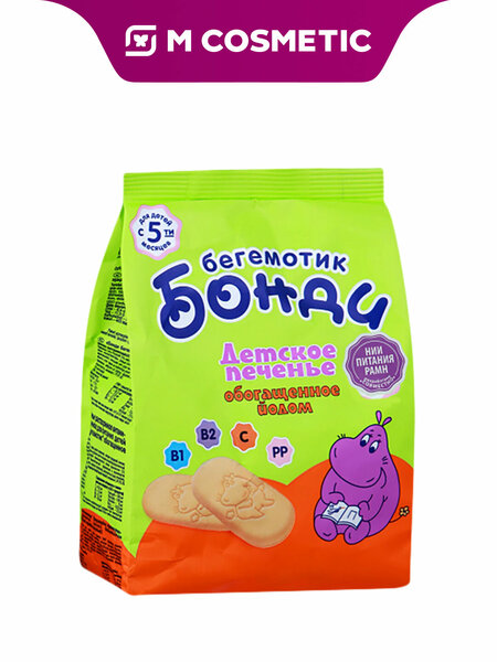 Печенье Бегемотик Бонди, детское, с йодом, для детей от 5 мес, 180 г