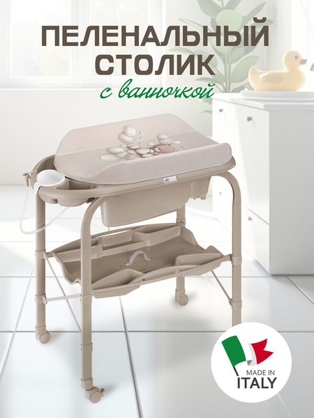 Основные характеристики предназначен для детей с рождения до 12 месяцев металлический каркас с закругленными углами надежная, устойчивая конструкция нетоксичные материалы без использования фталата съемный мягкий пеленальный матрасик с системой безопасного крепления ванночка широкая анатомическая, может использоваться в 2-х позициях (для малышей от 0 до 6 месяцев и от 6 до 12), имеет поднос для губки, мыла и отверстие для подвода воды через трубку полка для бутылочек и необходимых принадлежностей во время купания. 4 колеса, 2 с тормозами. Приятные особенности пеленального стола Cam Cambio: с продукцией итальянского бренда Cam уход за малышом станет простым и приятным процессом. Пеленальный столик с мягким матрасом и ярким оригинальным дизайном выполнен из качественных материалов. Пеленальный стол Cam Cambio это невероятно компактное и функциональное решение для молодых родителей. Столик имеет складную конструкцию с откидывающейся пеленальной доской, оборудован небольшой и удобной в использовании анатомической ванночкой предназначенной для малышей до 12 месяцев с полкой-держателем для ванных принадлежностей. Для удобного перемещения оборудовано колесиками, 2 из которых с тормозом. Общие размеры: в разложенном виде (шхгхв): 95x54x104 см, в сложенном виде (шхгхв): 83x31x93 см