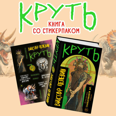 Книга Виктора Пелевина Круть со стикерпаком внутри. Идет третий век Зеленой Эры. Имплант-коррекция «Открытого Мозга» превратила женщин в доминантный гендер, и в уголовной иерархии изменился баланс сил. На ее вершину поднялся фем-блатняк — безжалостные куры-заточницы. Противостоять им не может никто из биологических мужчин, но есть нюанс. Маркус Зоргенфрей — лучший баночный оперативник «TRANSHUMANISM INC.». Задания, которые поручает ему адмирал-епископ Ломас, настолько чувствительны, что после них ему стирают память. Он не стал бы вникать в арестантские разборки, если бы не страшная опасность, нависшая над планетой. Как связаны разрушенный Светом ад и Мезозой? Что такое магия высших духов? Почему древнее зло нашло себе новое воплощение в сибирской ветроколонии? При чем здесь могила Париса, демон Ахилла и в чем тайна зловещей Варвары Цугундер, которую куры-заточницы считают своим ментором уже сотни лет? Остросюжетный триллер-детектив «Круть» даст ответ на многие мучительные вопросы, которых никто еще не решался задать.