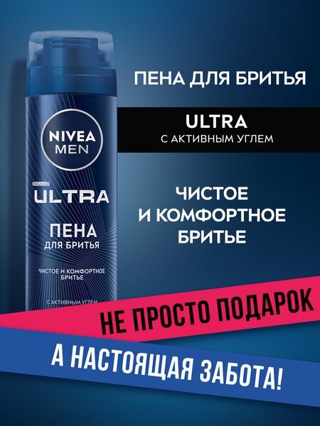 Пена для бритья NIVEA MEN ULTRA с активным углем, для всех типов кожи, 200 мл