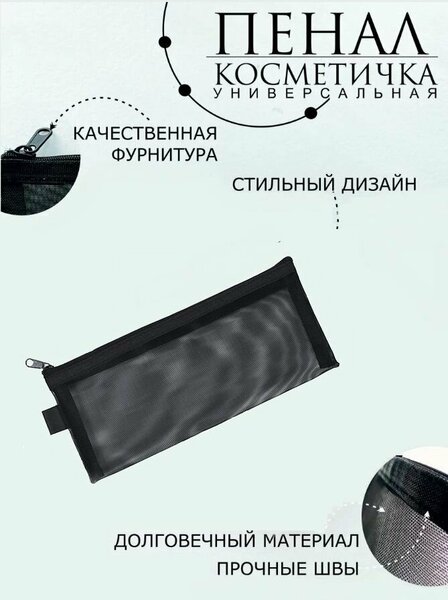 Пенал косметичка сетчатый прозрачный универсальный на молнии, чёрный