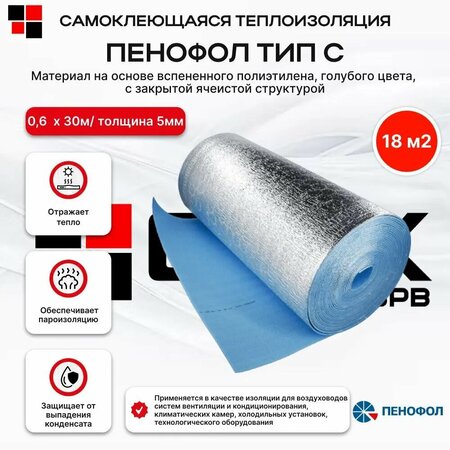 Фольгированный утеплитель для стен Пенофол тип С толщиной 5 мм и размером 0,6 х 30 м представляет собой профессиональную самоклеящуюся теплоизоляцию, предназначенную для различных областей применения. Материал изготовлен из вспененного полиэтилена, покрытого алюминиевой фольгой высокого качества с одной или двух сторон. Благодаря этому, утеплитель обладает высокими отражающими характеристиками и низким водопоглощением, что обеспечивает его высокую эффективность. Пенофол монтируется по всей поверхности конструкции без разрывов, эффективно снижая акустический и ударный шумы. При этом, для его применения не требуется установка пароизоляции, так как материал не впитывает и не пропускает влагу. Пенофол относится к трудно горючим, не поддерживающим горение веществам, что делает его безопасным для использования в различных условиях. Основные преимущества использования пенофола включают надежную защиту от конденсата и тепловых потерь, низкую теплопроводность основы из вспененного полиэтилена, индекс снижения воздушного и ударного шума не менее 20 дБ, гидрофобность и пароизоляцию, удобство, легкость и быстроту монтажа, гибкость и эластичность материала, экологическую безопасность и пожарную безопасность. Пенофол тип С 05 предназначен для тепло-, шумо- и пароизоляции ограждающих конструкций зданий, а также для тепловой изоляции воздуховодов и трубопроводов систем водоснабжения и отопления.