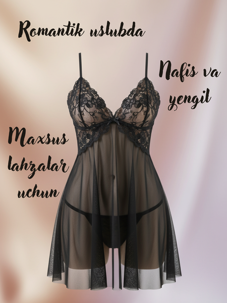Этот пеньюар создан для женщин, которые любят себя и хотят выглядеть привлекательно в любой момент. Лёгкая прозрачная ткань, кружевные вставки и атласные ленты придают модели невероятную женственность и шарм. Идеально подойдёт для романтического вечера!
