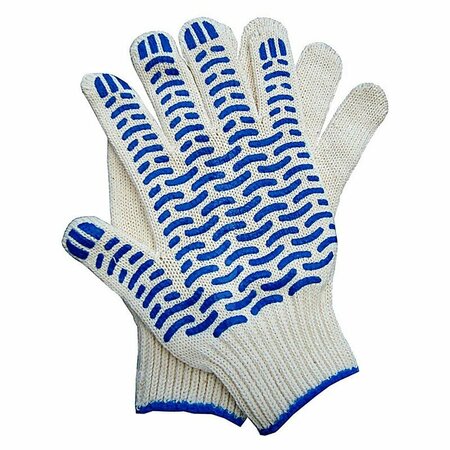 Универсальные рабочие перчатки хб ПВХ предназначены для защиты рук от мелких механических повреждений и общих производственных загрязнений. Рабочие перчатки изготовлены из хлопчатобумажной пряжи с покрытием точка из поливинилхлорида с нанесением рисунка на внутреннюю сторону перчатки. Покрытие ПВХ помогает обеспечить плотный захват и предотвращают соскальзывание детали. Перчатки трикотажные безразмерные с манжетой на резинке обеспечивают плотное прилегание перчатки к руке. Оптимальны для складских, погрузочно-разгрузочных, садовых и ремонтных работ. Положите их в автомобиль и, в случае необходимости, вы защитите свои руки от травм и грязи.