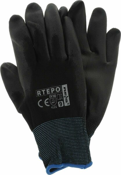 Защитные перчатки изготовлены из полиэстера. Захватная часть покрыта полиуретановым защитным слоем. Эти перчатки устойчивы к истиранию и разрывам. Обеспечивают отличное чувство объекта в руках. Перчатки демонстрируют очень высокую эластичность и, следовательно, устойчивость к растяжению. Они идеально подходят для ладони. Отделаны резинкой.