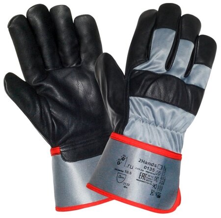 Перчатки комбинированные, во время изготовления используются: плотная синтетическая ткань и мягкая овечья (козья) кожа. Особенности и преимущества данной модели кожаных перчаток. Перчатки комбинированные: на ладони - мягкая овечья (козья) кожа, тыльная поверхность - плотная синтетическая ткань. Кожа используется сорта АВ (1 мм +/- 0.2 мм.). Прорезиненная защитная крага. У перчаток хлопковая подкладка упрощает одевание перчаток. Перчатки во время использования создают комфорт для кисти и удобства манипулирования предметами. Специальная ткань отражающая загрязнение. Перчатки характеризуются высокой стойкостью к истиранию и разрыву, ограниченная защита от порезов и проколов. Рекомендации по использованию: защита от механических повреждений и общих загрязнений. Перчатки можно использовать в течение всей рабочей смены. Размер 10.5. Длина перчаток 270 мм. Во время изготовления соблюдается ТР ТС 019/2011. Защитные свойства перчаток: прочность на истирание - 2000 циклов; прочность на разрез - индекс 1.2; сила требуемая для разрыва - 50 Ньютон; сила требуемая для прокола - 100 Ньютон.