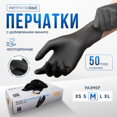 Перчатки Wally Plastic нитриловые, 50 пар, размер M, цвет черный