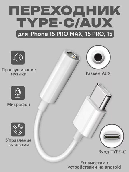 Переходник Lightning и Type-C → 3.5 мм Jack – незаменимый аксессуар для iPhone! Теперь вам не нужно отказываться от любимых наушников. С помощью этого адаптера вы сможете подключить любые наушники или аудиоустройства с разъёмом 3.5 мм к вашему iPhone. Адаптер выполнен из качественных материалов, прочный и долговечный. Благодаря компактному дизайну его удобно носить в кармане или сумке. Не требует Bluetooth или дополнительных приложений – просто подключите и пользуйтесь! ✨ Преимущества: Совместим со всеми моделями iPhone – подходит как для новых, так и для старых версий. Чистая и качественная передача звука – без шумов и помех. Простота использования – не нужны настройки. Компактный и лёгкий – всегда под рукой. Надёжная конструкция – рассчитан на длительное использование. Этот переходник позволит вам продолжать пользоваться любимыми наушниками без лишних затрат!