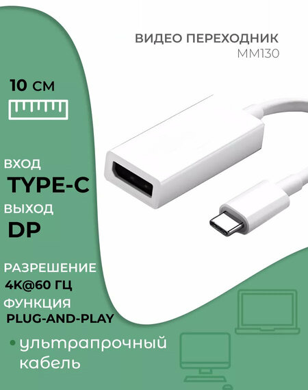 Переходник Type-C на DisplayPort — адаптер для ноутбуков, ПК и планшетов с поддержкой 4K, передача видео без потери качества