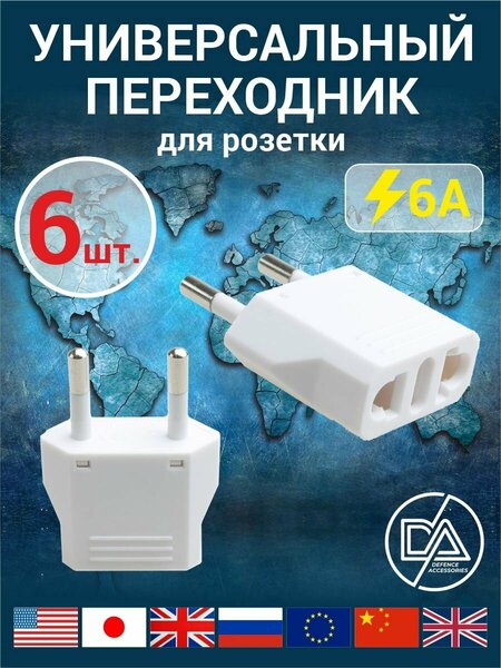 Сетевой переходник для розетки с американской или китайской вилки на европейский стандарт вилки предназначен для подключения устройств со штекером US/AU/CH к обычной розетке типа EU (с двух плоских на два круглых). Компактный переходник на американскую (китайскую) вилку позволит подключить устройства, имеющие американский формат вилок (NEMA 1-15) в розетки привычного для нас формата. Переходник на американскую розетку выполнен из качественных материалов, отличается исключительной надежностью и такой переходник розетка прослужит вам в течение длительного периода. Корпус переходника с китайской вилки выполнен из качественного пластика, контакты выполнены из медного сплава, ножки вилки из стали. Сила тока, подключенной нагрузки в переходнике на евровилке, не должна превышать 10 А, а мощность - 250 Вт. Установка переходника для розетки китай на основную вилку происходит быстро и удобно. Переходник для розетки (Америка)/ сетевой адаптер для американских и китайских вилок на евро розетку. переходник розетки вилка угловой китайской американской комплект адаптер евро евровилка электрическая китай телефона ноутбука универсальный сетевой европейской плоская xiaomi английской телевизора белый розетку компьютера техника британской ноутбуков eu путешествий микроволновки фен фотоаппарата 220в разъем чайников 220v англия электроники европа европереходник америка электрочайники универсальный xiaomi комплект гнездо евророзетку