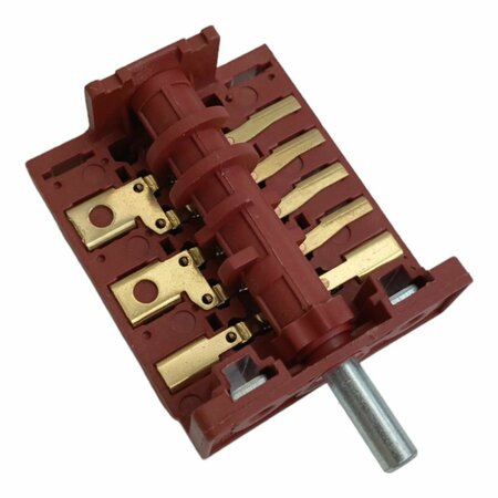 Переключатель для духовки, 6 позиционный Argeson Подходит для многих моделей двух, трёх и четырех конфорочных электроплит с духовкой, а также на другие электроплиты со схожими техническими параметрами для переключения режимов духовки! Характеристики переключателя режимов духовки плиты: Количество положений: 6+0 Количество контактов: 12 Сила тока: 16 А 250 V Рабочее напряжение: 220 - 250 V Длина штока: 17 мм Ширина: 49 мм Длина: 58 мм Высота: 28 мм Расстояние по центру креплений: 27,5 мм Производство: Турция