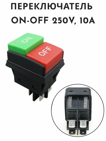 Переключатель универсальный, имеет 2 положения ON и OFF. Предназначен для подключения приборов с потреблением напряжения сети с показателями AC125-250V, 6A-10A. Используется в станках, электроинструментах, садовой технике и т. д. Рабочие температуры: -25~80℃; Материал корпуса: ABS; Размер: 45*37мм; Вес: 28г.