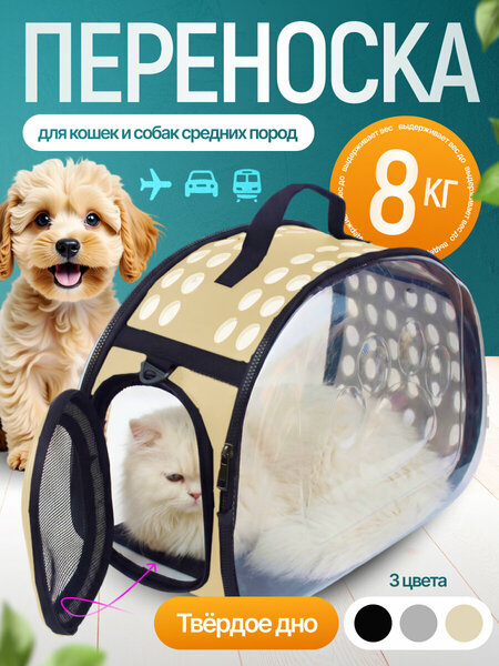 Переноска для кошек и собак сумка-переноска складная прозрачная для транспортировки животных бежевая