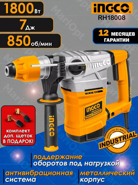 Перфоратор INGCO RH18008 - это надежный и мощный инструмент, который станет незаменимым помощником при выполнении строительных и ремонтных работ. Перфоратор INGCO RH18008 оснащен мощным двигателем, который обеспечивает высокую производительность и скорость работы. Это позволяет быстро и эффективно выполнять отверстия в различных материалах, таких как бетон, кирпич, камень и дерево. Благодаря наличию функции реверса, перфоратор INGCO RH18008 позволяет легко и быстро менять направление вращения бура. Это значительно упрощает процесс работы и позволяет избежать лишних усилий и затрат времени. Перфоратор INGCO RH18008 имеет эргономичный дизайн, который обеспечивает удобство и комфорт при работе. Рукоятка инструмента имеет прорезиненное покрытие, что предотвращает скольжение и обеспечивает надежный хват. Сетевой перфоратор INGCO RH18008 отличается высокой надежностью и долговечностью. Это подтверждается многолетним опытом использования продукции бренда INGCO, который зарекомендовал себя на рынке строительных инструментов. В целом, перфоратор INGCO RH18008 - это надежный, мощный и удобный инструмент, который станет незаменимым помощником при выполнении строительных и ремонтных работ.