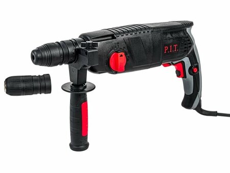 Трёхрежимный перфоратор SDS-Plus с горизонтальным расположением двигателя для сверления различных материалов и лёгких долбёжных работ. Съемный патрон. Особенности: Сменный быстрозажимной патрон в комплекте. 3 режима работы: сверление, сверление с ударом, долбление. Система фиксации оснастки SDS-Plus. Электронная регулировка скорости от нажатия с ограничителем максимальных оборотов на выключателе. Функция регулировки положения долота в режиме долбления. Обрезиненная, текстурированная основная рукоятка. Регулируемая на 360° дополнительная рукоятка с ограничителем глубины сверления. Модернизированная пылезащитная предохранительная муфта. Реверс и кнопка фиксации инструмента во включенном состоянии. Усиленное крепление сетевого кабеля.