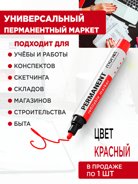 Перманентный Маркер красный, заправляемый, водостойкий, MONET 2MP003, 1 шт