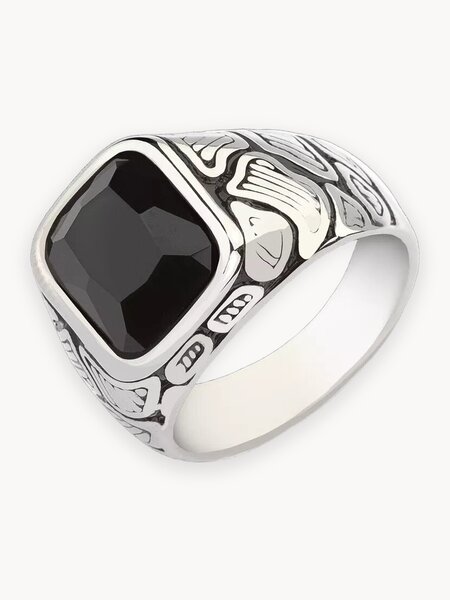 Перстень мужской бижутерия под серебро. Максимальная ширина кольца 15,4 мм, средний вес - 15 г. Подойдет мужчине любого возраста. Можно подарить молодому человеку, парню, мужу или брату по любому поводу. Мужская посеребренная печатка выглядит солидно и элегантно, будет отличным дополнением и к повседневному и к торжественному образу. Не вызывает аллергических реакций при контакте с кожей, даже при регулярной носке. Не помешает в повседневных делах и легко сочетается с другими украшениями. Покрытие серебром невозможно отличить от настоящего серебряного кольца даже опытному ювелиру. Идеально отполированная поверхность отражает свет и привлекает внимание. Вставка под черный агат выглядит стильно и брутально. Высококачественная хирургическая сталь 316L под родированное серебро, не подвержена ржавчине, не темнеет, не окисляется от воды или пота. Этот аксессуар будет радовать вас долгое время.