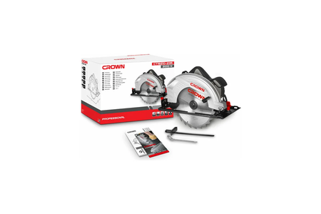 Дисковая пила CROWN CT15210-235. Пильный диск диаметром 235 мм. Параллельный упор для точных прямых резов. Ключ для замены пильного диска. Руководство пользователя. Упаковка.