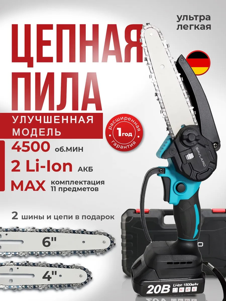Цепная аккумуляторная пила — это удобный и практичный инструмент для работы в саду или на даче. Она работает от аккумулятора, что обеспечивает мобильность и независимость от электросети. Благодаря отсутствию токсичных выхлопов, мини электропила идеально подходит для работы в закрытом помещении. Комплектация с двумя аккумуляторами позволит увеличить время непрерывной работы. Садовую электро пилу используют для ухода за садовым участком, подрезки веток, демонтажа старых деревянных конструкций, ремонта и строительства, а также для распиловки бруса, досок и пластиковых труб. Безопасность оператора обеспечивается защитным кожухом и дополнительной кнопкой, которая обеспечивает защиту от случайного запуска минипилы. Благодаря своей автономности и отсутствию вредных выбросов, ручная электрическая пила для сада станет незаменимым помощником на даче или на природе. Лёгкий вес и компактные размеры сучкореза позволят работать даже одной рукой и без дополнительных усилий. Замена и регулировка цепи происходят быстро без инструмента разборки благодаря современным технологиям. Управлять электроцепным аппаратом комфортно в силу удобной кнопке-блокиратору пускового курка и ударопрочному корпусу. Компактный размер электро минипилы заменит тяжелые бензопилы, ножовки, электроножовки, электросучкореза, кустореза и другие устаревшие электроинструменты благодаря своей многофункциональности. Противоскользящая ручка позволяет использовать ее взрослой рукой: мужской и женской. Небольшой сучкорез с электромотором и зарядником отличный подарок на праздник, новый год и день рождения учителю, коллеге, папе, дедушке, брату, сыну, мужчине, женщине в качестве туристического, дорожного и походного инвентаря. Запасной литиевый АКБ делает её надежным товаром для строительных, хозяйственных, ремонтных, огородных и бытовых задач, а также пригодится при ремонте на рыбалке, в лесу или в путешествии.