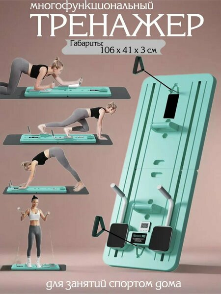Многофункциональный тренажёр для дома – идеальный выбор для эффективных тренировок и укрепления мышц. Компактная и складная конструкция делает его удобным для хранения, а устойчивые упоры и нескользящее покрытие гарантируют безопасность. Тренажёр позволяет проработать грудные, плечевые, спинные и брюшные мышцы. С ним вы сможете выполнять разнообразные упражнения, включая отжимания, благодаря специальным фиксаторам и резиновым эспандерам. Удобные поролоновые ручки обеспечивают комфорт, а анатомическая форма помогает сохранить правильную технику. Подходит как новичкам, так и профессионалам. С ним ваши домашние тренировки станут продуктивными и безопасными! Дополнительные свойства Комплектация – фитнес-платформа Материал – прочный пластик, нескользящее покрытие Размер – 106 × 41 × 3 см Размер упаковки – 56 × 42 × 13 см Конструкция – складная Ручки – мягкие, поролоновые Назначение – отжимания, пресс, эспандеры, общая сила