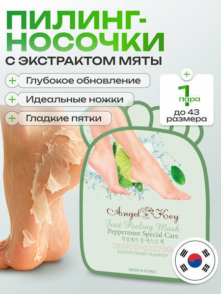 Пилинг Носочки для ног Angel Key, маска для ног отшелушивающая с мятой, 1 пара, Корея