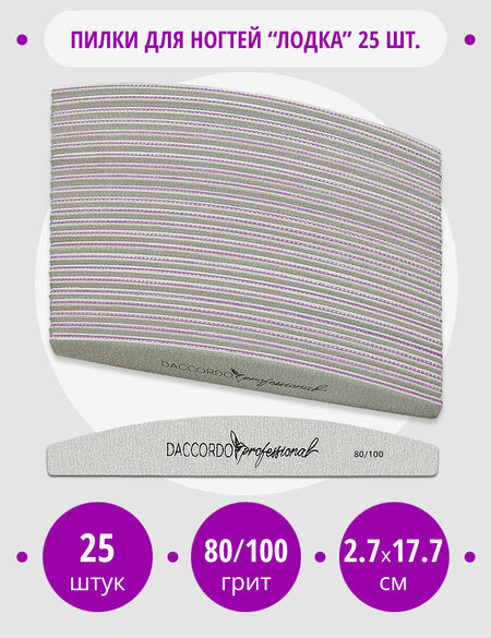Пилки для ногтей 80-100 грит 25 шт, Daccordo Лодка, 18 см, для маникюра и педикюра