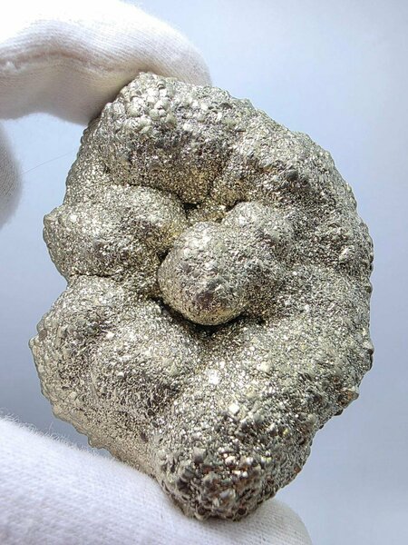 Пирит минерал. Месторождение Северный Кавказ, размер 67х56х35 мм. Вес 268 грамм. Камень пирит получил свое название от греческого слова «пирос» — «огонь», что было связано с его способностью высекать искры при ударе. Раньше данный минерал часто путали с золотом, отсюда и его другие названия : "золото Инков", "золото дураков", "ложное золото". Минерал пирит образует кубические, пентагон-додекаэдрические, реже октаэдрические кристаллы. Иногда на гранях кристаллов пирита присутствует грубая штриховка. Характерны сростки кристаллов. Чаще всего пирит встречается в виде сплошных зернистых агрегатов, радиально-лучистые агрегатов, сферолитов, почковидных и дисковидных образований. И куда же без магических свойств: магические свойства пирита известны с древних времен. Еще средневековые алхимики считали, что этот минерал можно превратить в золото. Современные эзотерики применяют камень как защитный талисман для людей опасных профессий, связанных с риском, например, пожарных, военных, кузнецов и строителей. Колдуны нередко используют магические свойства пирита для восстановления своих жизненных сил после проведения магических ритуалов и колдовских обрядов. Камень натуральный, поэтому может иметь естественные трещинки, включения, неровности поверхности, рисунка, цвета, что подтверждает и подчеркивает его природное происхождение. Цвет на фото может несколько отличаться от цвета в реальности за счет разных настроек мониторов и особенностей освещения при фотографировании.