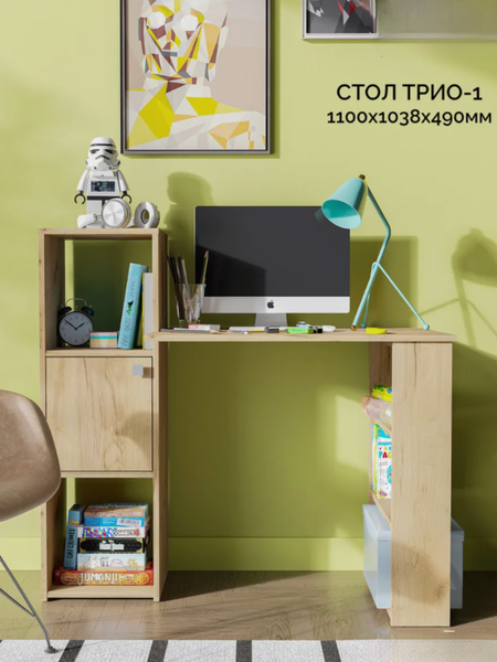 Компьютерный письменный стол с полками и шкафчиком — практичное и функциональное решение для организации рабочего пространства дома или в офисе. Благодаря продуманной конструкции стол помогает рационально использовать пространство и поддерживать порядок во время работы или учебы. Открытые полки позволяют удобно разместить книги, учебные материалы, папки, аксессуары и декоративные элементы. Закрытый шкафчик подходит для хранения документов, канцелярии и личных вещей, защищая их от пыли и визуального беспорядка. Все необходимое всегда находится под рукой. Рабочая поверхность стола достаточно просторна для размещения ноутбука или компьютера, клавиатуры, тетрадей и других принадлежностей. Стол подходит для школьников, студентов и взрослых, его можно использовать для учебы, работы за компьютером, удаленной работы и повседневных задач. Лаконичный дизайн и универсальный цвет позволяют легко вписать стол в интерьер детской комнаты, спальни, кабинета или офиса. Устойчивая конструкция рассчитана на ежедневное использование и обеспечивает комфортное рабочее место.