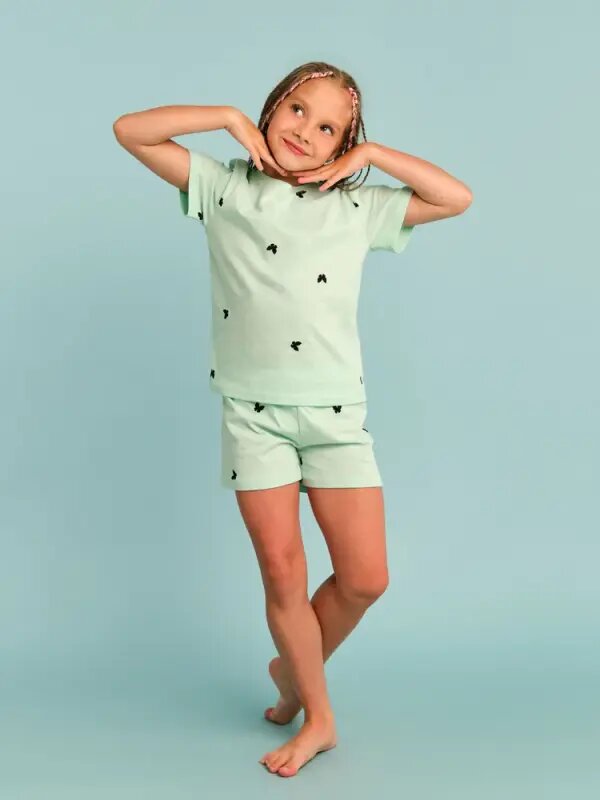 Пижама для девочек с шортами и футболкой станет отличным выбором для дома. Состав 100% хлопок делает её особенно комфортной и приятной к телу. Натуральный хлопок позволяет коже дышать, обеспечивая максимальный уют. Важно отметить, что этот материал хорошо держит форму даже после множества стирок, что продлевает срок службы изделия. Такой комплект не сковывает движения, что очень важно в повседневной жизни ребенка. Футболка и шорты подойдут как для сна, так и для активного времяпровождения дома. Пижама представлена в разнообразных расцветках, из которых каждая девочка сможет выбрать что-то по своему вкусу. Благодаря использованию натурального хлопка ваше чадо будет чувствовать себя комфортно на протяжении всего дня или ночи. Этот материал способствует хорошей вентиляции кожи, что предотвращает перегрев и обеспечивает комфортный сон. Кроме того, швы обработаны так, чтобы не вызывать раздражения и дискомфорта при длительном ношении.