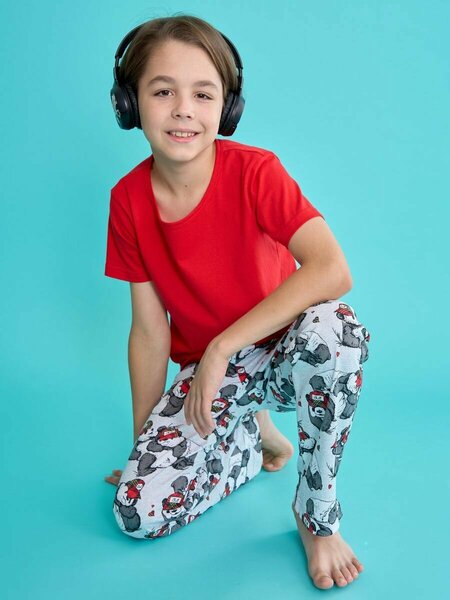 Детская домашняя одежда для мальчиков. Комфорт и уют с ярким комплектом, состоящим из брюк и кофты с длинным рукавом. Изделие выполнено из натурального хлопка, обеспечивающего мягкость и тепло. Отличное решение для малыша, которым можно приятно порадовать на Новый год или иной значимый праздник. Набор идеально подходит для дома, обеспечивая комфортный сон и отдых в течение всего дня. Яркий принт привносит особую привлекательность, не оставляя равнодушными маленьких владельцев. Хлопковые брюки дополняют образ, создавая очаровательный вид совместно с кофтой. Этот костюмный набор также станет отличным выбором для тематических фотосессий, благодаря оригинальному дизайну. Ночная одеяние легко найдет применение в гардеробе ребенка, став любимым элементом как ночного времени суток, так и походов в детский садик. Прикольная одежда не только удобна для сна, но также позволит ребенку чувствовать себя уверенно и свободно среди сверстников.