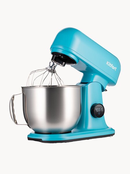 Планетарный миксер КТ-3473 поможет вам смешать ингредиенты для любого блюда, взбить яичный белок или сливки, приготовить картофельное пюре, мусс, крем, соус, замесить жидкое тесто для блинов или крутое для пельменей и пирогов. Кнопкой «Вкл/Выкл» можно остановить или продолжить работу. С помощью регулятора можно установить скорость от 1 до 8. Для начала работы выберете скорость, поворачивая регулятор по часовой или против часовой стрелки. Индикатор скорости появится на дисплее. Чтобы включить таймер надо нажать и удерживать любое место на дисплее до тех пор, пока таймер и скорость не сбросятся. Затем, поворачивая регулятор по часовой или против часовой стрелки, вы можете настроить время от 10 сек. до 10 мин. с шагом 10 сек. В комплекте идут венчик для взбивания, крюк для замеса крутого теста, насадка для смешивания продуктов и приготовления пюре. Форма насадок и чаши подобраны так, что почти при любом количестве продуктов насадка перемешает их качественно и быстро. Во время работы насадка вращается вокруг своей оси и одновременно движется по окружности по внутреннему объёму чаши, обеспечивая идеальное смешивание. Чаша ёмкостью 5 л изготовлена из нержавеющей стали, в ней можно смешивать даже горячие ингредиенты. Планетарный миксер укомплектован защитной крышкой с загрузочным отверстием, через которое можно добавлять ингредиенты во время работы. Кроме того, в комплекте идут сепаратор для яиц и лопаточка для перемешивания. Готовьте с удовольствием и лёгкостью! Миксер КТ-3473 может работать в полностью автоматическом режиме. Прибор оснащён системой безопасности. Он сам остановит работу, если откинуть моторный блок. Миксер автоматически выключится через 10 минут работы.