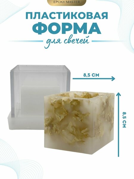 Пластиковая форма для изготовления свечей с полым кубом EPOXYMASTER, 8,5х8,5см